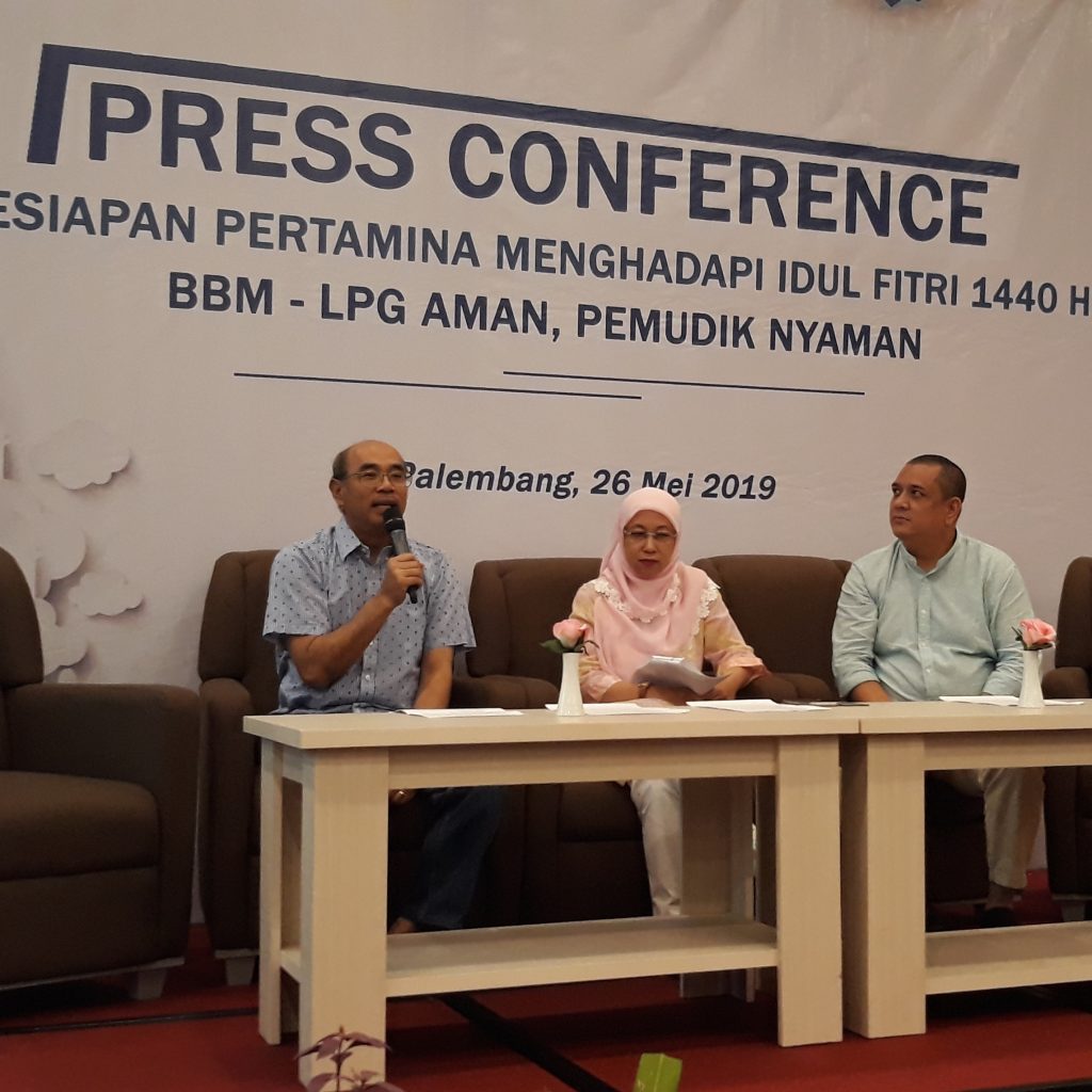 Pertamina Sumbagsel siap menghadapi Idul Fitri 2019 dengan menjamin ketersediaan BBM dan LPG, hal ini dikatakan oleh General Manager RU III Plaju Yoshua I.M Nababan dan General Manager MOR II Sumbagsel Primarini dalam Press Conference di Hotel Harper, Minggu 26 Mei 2019.