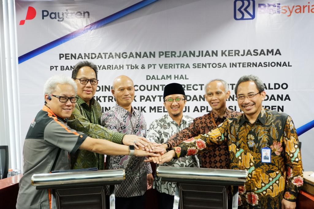 Jakarta, 18 September 2019 — PT Bank BRIsyariah Tbk (BRIsyariah) dan PT. Veritra Sentosa Internasional (Paytren) menandatangani perjanjian kerja sama dalam rangka meningkatkan layanan keuangan digital di Indonesia. Penandatanganan perjanjian kerja sama dilakukan oleh Direktur Utama Paytren Hari Prabowo dengan Direktur Bisnis Komersil BRIsyariah Kokok Alun Akbar, Rabu (18/9/2019), disaksikan oleh Komisaris Paytren Ustadz Yusuf Mansur, dan Direktur Utama BRIsyariah Ngatari.