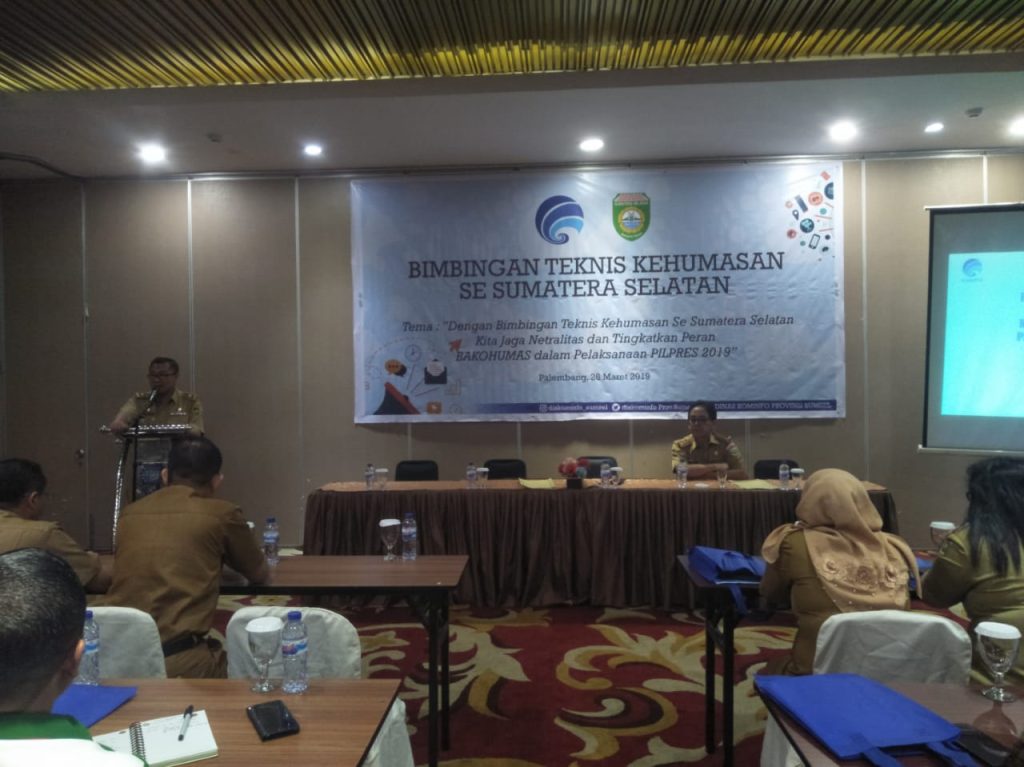 PALEMBANG, SONORA – Dinas Komunikasi dan Informasi Provinsi Sumatera Selatan menggelar Bimbingan Teknis Kehumasan Se-Sumatera Selatan, Selasa (26/3) pagi, di Grand Atyasa Convention Center. Kegiatan ini mengambil tema: Dengan Bimbingan Teknis Kehumasan Se-Sumatera Selatan Kita Jaga Netralitas dan Tingkatkan Peran Bakohumas dalam Pelaksanaan Pilpres 2019.