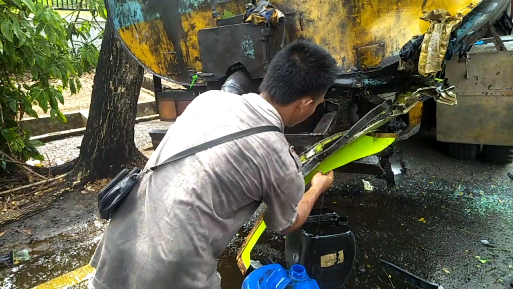 Akibat tabrakan tersebut, mobil berisi minyak inti sawit yang dikendarai oleh Eki tersebut, rusak pada bagian belakang tangki, sehingga minyak yang ada di dalam tangki tumpah ke lajur jalan bagian kiri. Sedangkan, truk fuso yang dikendarai Dedi warga Bengkulu, mengalami kerusakan parah pada kabin mobil tersebut. Sementara itu, mobil tangki yang berisi minyak sawit yang dikendarai Zul, hanya mengalami kerusakan pada pintu sebelah kiri.