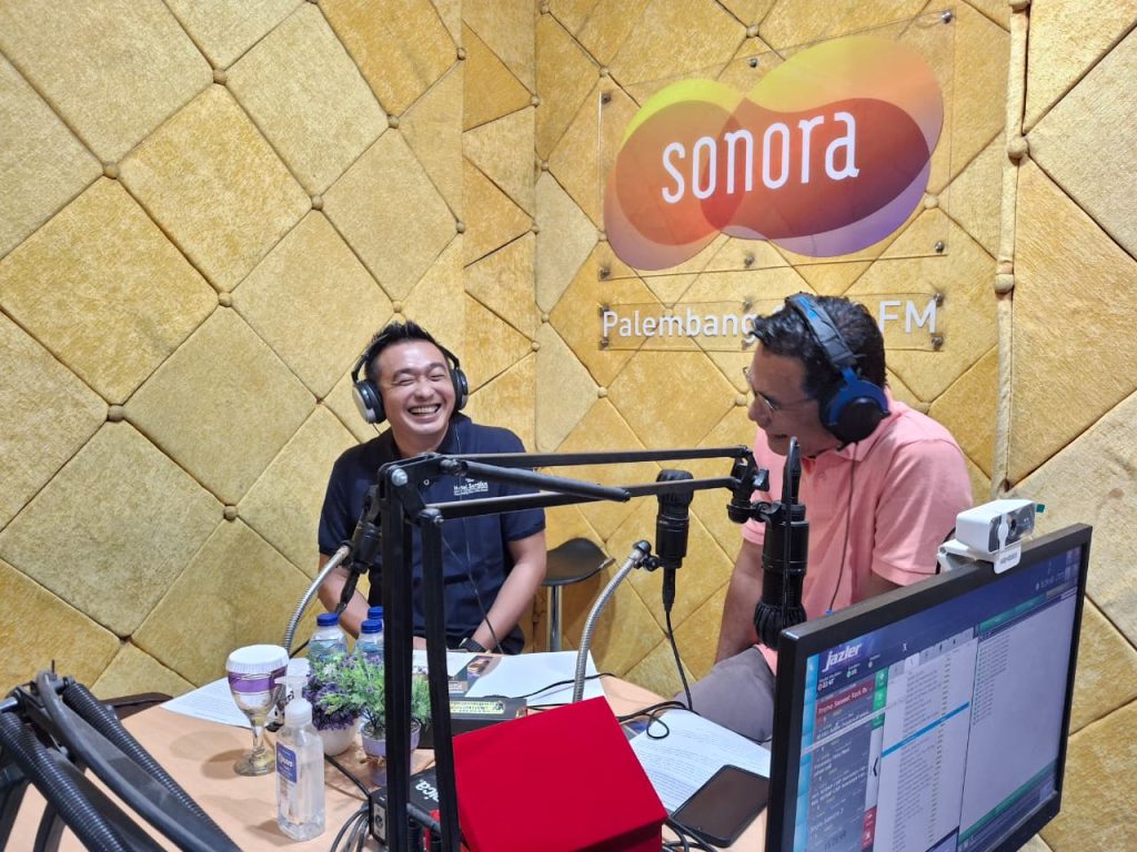 Palembang – Suasana hangat dan penuh keceriaan mewarnai acara talkshow Radio Sonora Palembang pada Kamis, 16 Oktober 2025. Dalam perbincangan santai yang dipandu oleh host Yuliansyah, hadir Muhkson Al Hanif atau biasa dipanggil Sony, Sales Marketing Hotel Santika Lahat, yang membagikan cerita menarik seputar keunggulan dan pengalaman berkesan dari satu-satunya hotel berbintang di Kota Lahat. Obrolan hangat ini tidak hanya memperkenalkan fasilitas dan pelayanan Santika Lahat, tetapi juga menghadirkan semangat kebersamaan serta optimisme terhadap pariwisata daerah.