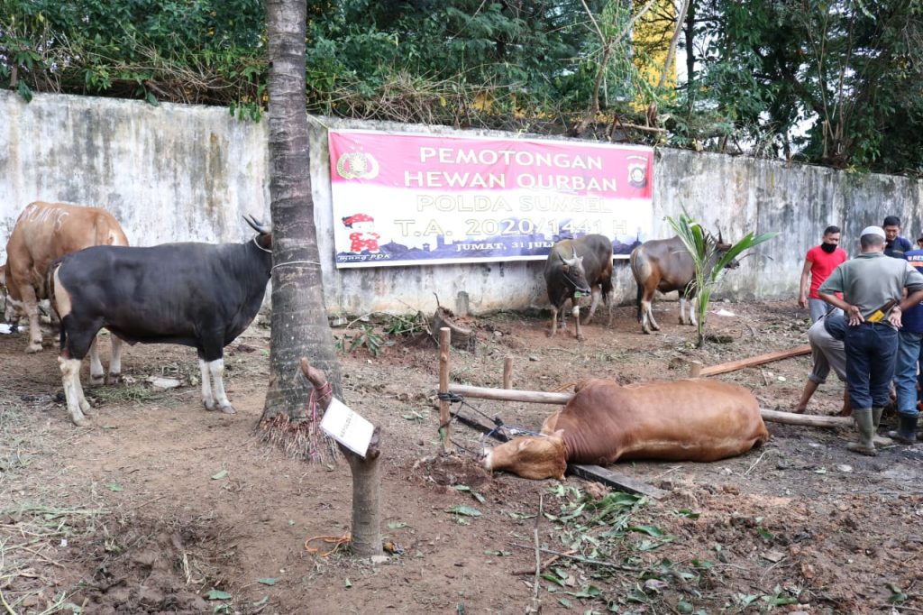 Hewan kurban yang disembelih dan akan diberikan sebanyak 35 ekor sapi dan 11 ekor kambing, yang merupakan Pemberian dari Kapolda Sumsel, Wakapolda Sumsel, Pejabat Utama Polda Sumsel ,Perwakilan Kasatwil Jajaran serta personil Polda Sumsel ,Hewan kurban ini disembelih dilingkungan Masjid Alaman Komplek Pakri sebanyak 16 ekor Sapi dan 9 Ekor Kambing ,sedangkan penyembelihan diluar Komplek Pakri 18 ekor Sapi 2 ekor kambing diantaranya diMasjid Kyai Merogan,dimasjid agung joyokromo palembang,Panti Asuhan rumah Intan,Masjid Sukadamai,Masjid sukorejo,Masjid Auri Palembang,dikediaman Habib Amak Masjid Pegayut,Masjid Ukhuwah ,Masjid Spn Betung,Masjid Satbrimobda,Masjid DitPolairud ,Ponpes Ma’ariful ulum tlng kelapa ponpes Sabilul hasanah Banyuasin,di Majlis PWNU Sumsel,di Majlis Alawwabien Palembang dan ditempat lainnya,sedangkan info terakhir tadi malam Hewan Kurban Polres Jajaran : 1.Polrestabes Palembang(7 Sapi,4 Kambing)