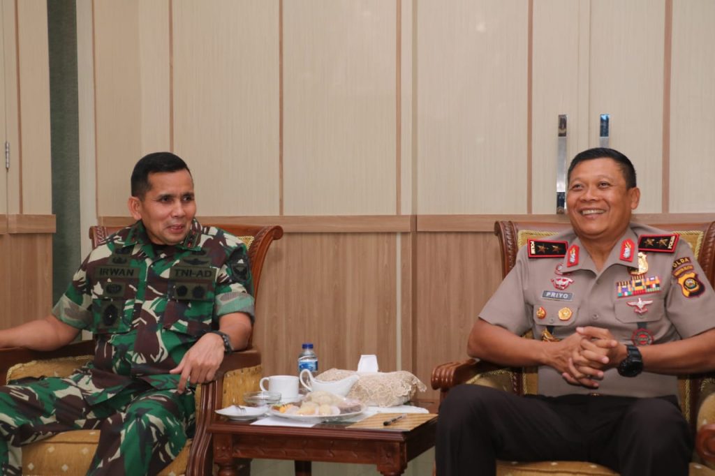Pada kesempatan tersebut, Pangdam II/Swj memperkenalkan Pejabat Utama Kodam II/Swj yang hadir menyambut Kapolda dan menyampaikan beberapa hal diantaranya, “Selamat datang Pak Kapolda di Makodam II/Swj, dengan kehadiran Bapak Kapolda kesini mudah-mudahan sinergi TNI/Polri semakin tetap terjalin. Dalam penugasan dilapangan semoga kita tetap bisa bekerja sama demi menjaga kedaulatan serta memelihara Kamtibmas. Saya juga selalu menyampaikan kepada Danyon dan prajurit TNI pada kesempatan apel, kita harus menjaga sinergi antara TNI/Polri, saya terus menyampaikan jauhi narkoba dan jaga keharmonisan antara TNI/Polri. Banyak yang bisa kita bangun demi menciptakan keharmonisan antara TNI/Polri diantaranya dengan berolahraga bersama, kegiatan rutinitas yang berdampingan secara langsung, ucap Pangdam II/Swj”.