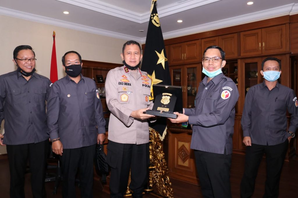 Kapolda Sumsel Irjen Pol. Prof.Dr.Eko Indra Heri S., M.M menerima audiensi Ketua dan komisioner Bawaslu, (22/6) bertempat di ruang kerja Kapolda.