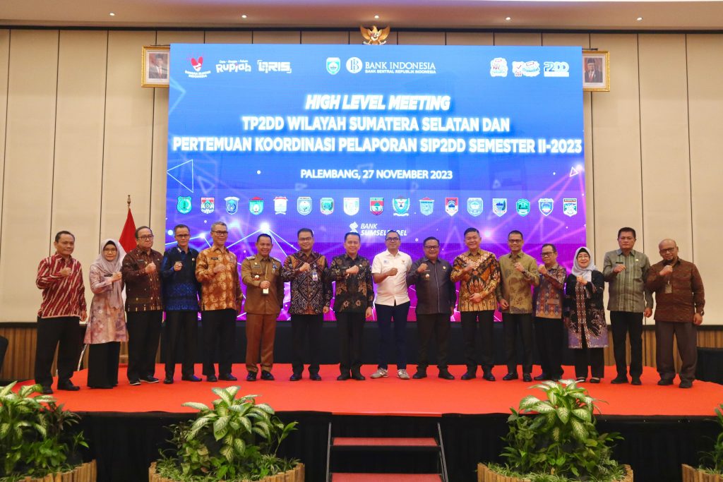 PALEMBANG SONORA – Dalam rangka mendorong optimalisasi Pendapatan Asli Daerah (PAD) dan belanja daerah, kesehatan fiskal, serta peningkatan layanan dan tata kelola keuangan daerah, Kantor Perwakilan Bank Indonesia Provinsi Sumatera Selatan menyelenggarakan kegiatan High Level Meeting Tim Percepatan dan Perluasan Digitalisasi Daerah (TP2DD) Wilayah Sumatera Selatan. Kegiatan ini dilaksanakan di Ballroom Wyndham Opi Hotel Palembang pada hari Senin, 27 November 2023. Kegiatan ini turut dihadiri oleh Kepala Daerah, Kepala Badan Pengelola Keuangan dan Aset Daerah, dan Kepala Badan Pengelola Pajak Daerah dari Provinsi dan 17 Kabupaten/Kota se-Sumatera Selatan.