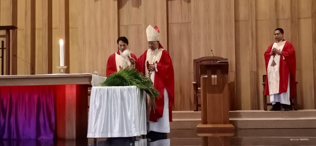 Umat Kristiani mulai memasuki Pekan Suci Perayaan Paskah 2020 yang dimulai dengan Perayaan Minggu Palma 5 April 2020. Umat Katolik Keuskupan Agung Palembang mengikuti Peratan Minggu Palma melalui live streaming dari Gereja Santo Yoseph Palembang, pukul 07.30.Wib yang dipimpin oleh Uskup Agung Palembang Aloysius Sudarso, SCJ didampingi oleh RD. Laurentius Rakidi dan RD. Eko H.