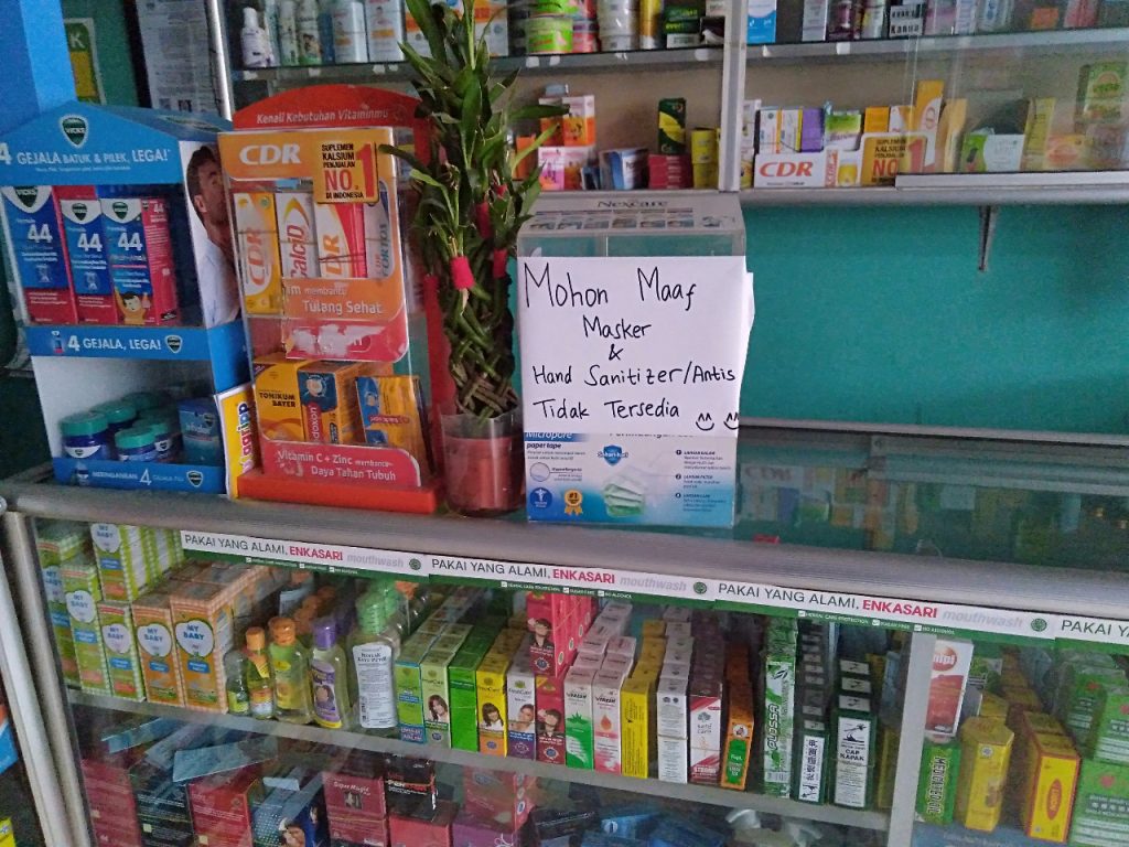 “Kosong kak, karena virus, banyak orang ambil masker jadi habis “ ucapnya.