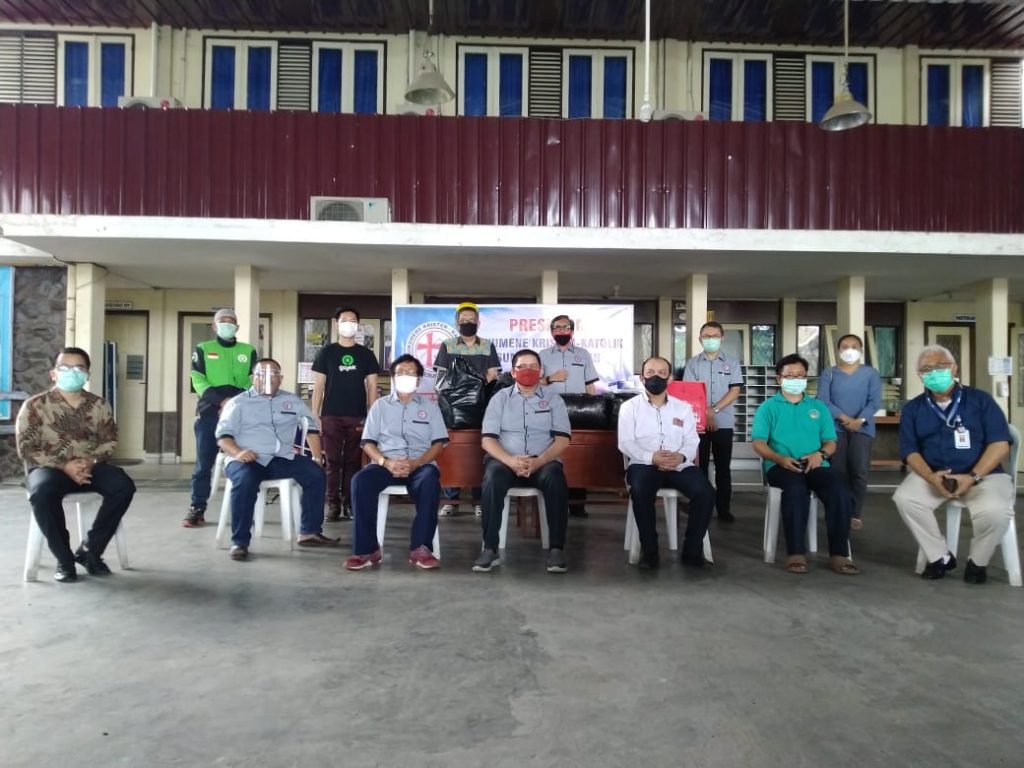 Presidium OKKSS dan Crisis Center Keusukupan Katolik Kota Palembang siang ini, Rabu 29 April 2020 di Gereja Paroki Santo Yoseph di Jalan Jendral Sudirman telah menyerahkan 230 buah APD asmat lengkap kepada RS Siloam dan RSMH dan juga 350 buah Masker kepada driver Ojol Gojek.