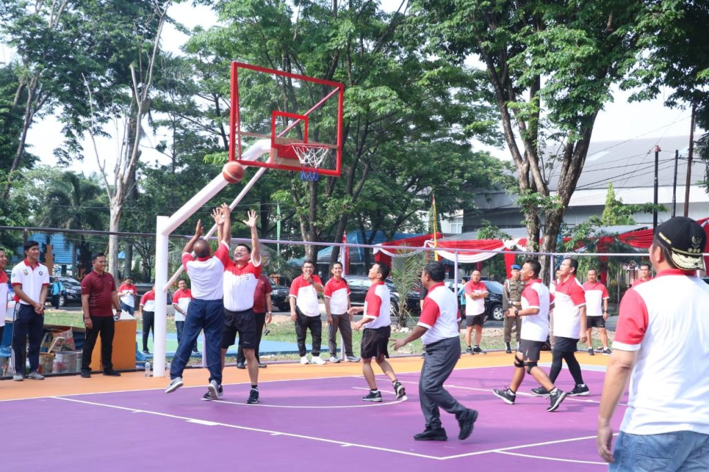 Mengawali sambutannya, Kabaharkam Polri menyampaikan beberapa hal diantaranya, “Arena olahraga di Pakri ini sudah selesai, baik lapangan basket, lapangan bulutangkis, lapangan tenis, lapangan voli sudah bisa kita gunakan. Kegiatan yang diadakan pada hari ini merupakan kegiatan kita bersama yang intinya berawal dari sebuah kecintaan, disini juga hadir 10 pemain nasional maupun juara dunia atlet bulutangkis kita, mereka hadir kesini bukan karena dipanggil, tetapi mereka datang karena kecintaan, kecintaan kepada Sumatera Selatan. Kita tidak akan pernah bisa bekerja keras tanpa bahagia dan kita tidak mungkin mencari sukses kalau tanpa kerja keras, jadi bahagia dulu, kerja keras, sukses, ucap Kabaharkam”.