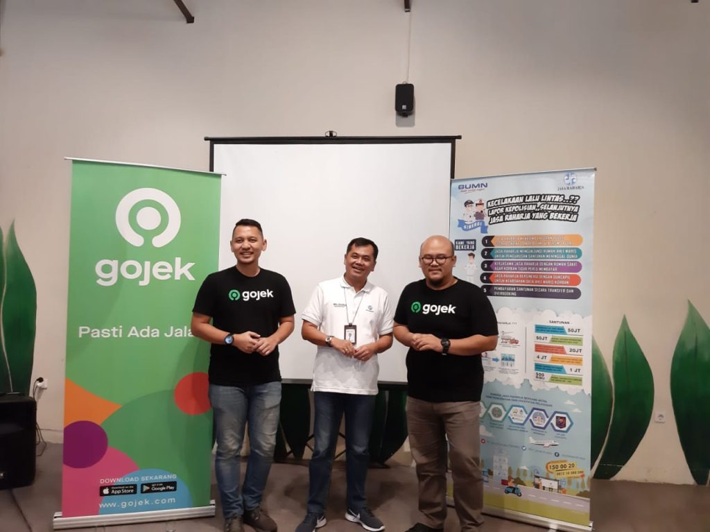 PALEMBANG, SONORA – Gojek dan Jasa Raharja, hari ini melakukan sosialisasi perlindungan asuransi kecelakaan bagi layanan GoCar. Melalui kolaborasi ini, Gojek menjadi penyedia layanan transportasi terdepan yang memberikan perlindungan menyeluruh bagi pelanggan dan mitra pengemudi atas risiko yang terjadi di jalan raya. Kepedulian Gojek terhadap pelanggan dan mitra pengemudi ini diperkuat melalui keunggulan Jasa Raharja yang secara proaktif memantau, menemukan, dan menindaklanjuti laporan sehingga proses klaim bisa dilakukan dengan cepat dan mudah.