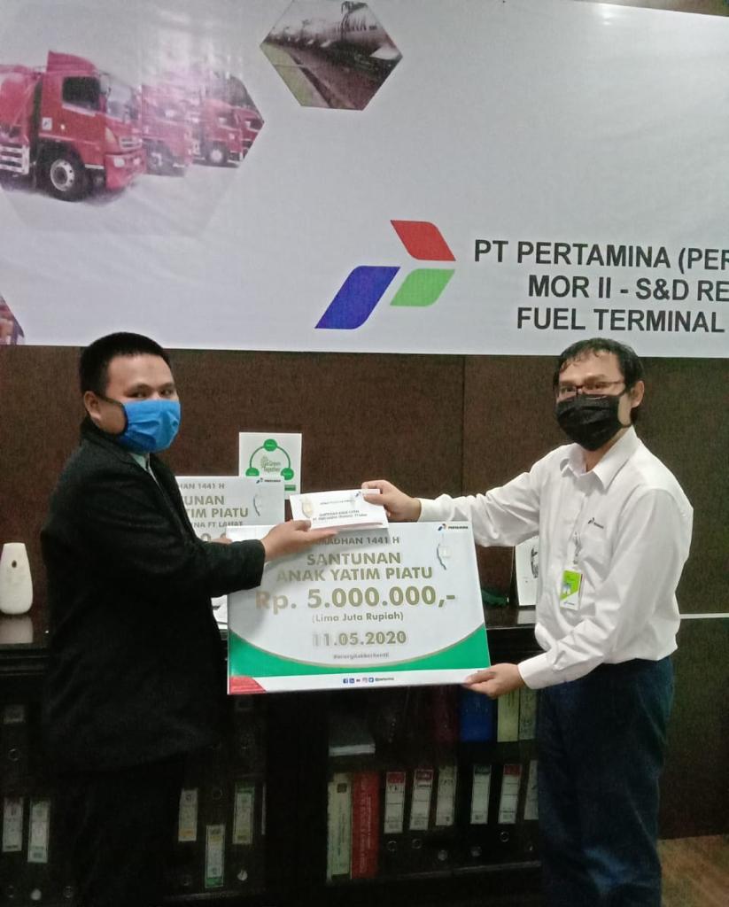 PALEMBANG, SONORA – PT Pertamina (Persero) Marketing Operation Region (MOR) II melalui Fuel Terminal Lahat turut memaknai bulan suci ramadhan dengan menebar kebahagiaan kepada sesama melalui pemberian santunan anak yatim, dengan total bantuan yang disalurkan senilai Rp 25.000.000,- Penyerahan bantuan secara simbolis dilakukan pada hari Minggu, 10 Mei 2020 di Kantor Fuel Terminal Lahat oleh Manager Fuel Terminal Lahat Teguh Tri Widodo kepada pengurus Panti Asuhan Aisyah, Panti Asuhan Budi Mulya, Panti Asuhan Darul Fallah, dan Anak yatim ring 1 Kelurahan Kota Negara.