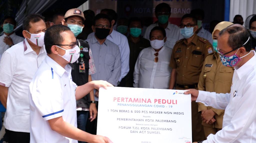 Sementara itu Walikota Palembang, Harnojoyo mewakili Pemerintah Kota Palembang memberikan apresiasi kepada Pertamina atas bantuan yang diberikan. Pemberian bantuan ini berkerjasama dengan Forum Tanggung Jawab Sosial dan Lingkungan (TJSL) Kota Palembang dan Aksi Cepat Tanggap (ACT) Sumatera Selatan, yang dilakukan secara simbolis dengan disaksikan oleh perwakilan dari Kodim 0418, Polrestasbes, berserta jajaran pejabat pemerintah Kota Palembang.