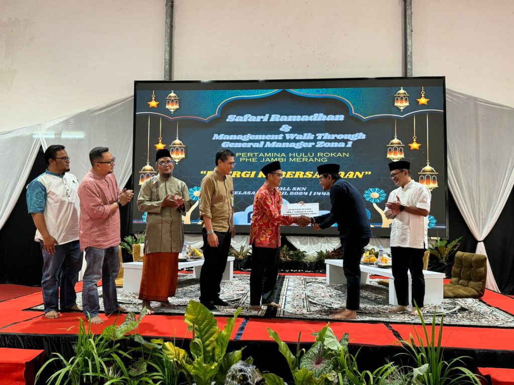 Bayung Lencir – Dalam rangkaian program Safari Ramadhan 1445 H, General Manager PHR Zona 1 melakukan kunjungan ke PHE Jambi Merang, Kecamatan Bayung Lencir, Kabupaten Musi Banyuasin, Sumatera Selatan. Turut hadir mendampingi Sr. Manager Production & Project Zona 1, Head Comrel & CID Zona 1, Manager WI Zona 1, Manager Project Zona 1 dan Manager HSSE Operations Zona 1 (2/4).