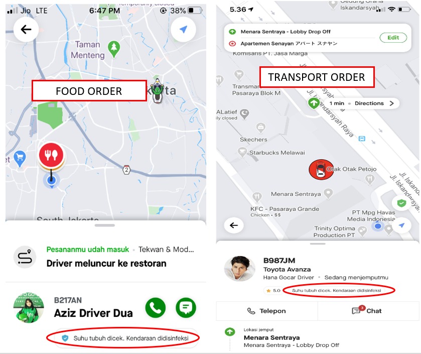 aplikasi GoRide, GoCar dan GoFood. Gojek merupakan layanan on-demand pertama di Indonesia yang meluncurkan fitur ini guna memperkuat keamanan di ekosistemnya agar dapat terus diandalkan masyarakat. Chief Operations Officer Gojek Hans Patuwo mengatakan bahwa kepercayaan masyarakat terhadap layanan Gojek merupakan tanggung jawab yang senantiasa dijaga dengan baik. Oleh karena itu pihaknya berkomitmen untuk terus menghadirkan berbagai inovasi dan inisiatif yang dapat menjawab kebutuhan masyarakat, baik sebelum maupun selama pandemi COVID-19 ini. “Tim operasional dan engineering kami bekerja keras menghadirkan inovasi-inovasi yang dibutuhkan mmasyarakat maupun mitra driver. Terbaru, saat memesan layanan Gojek, pengguna akan mengetahui status pengecekan suhu tubuh mitra driver dan status desinfeksi kendaraan. Hadirnya fitur ini, merupakan wujud keseriusan kami dalam memastikan semakin meningkatnya standar operasional