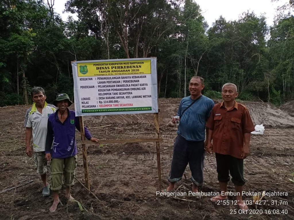 Plt Kepala Dinas Perkebunan Ahmad Toyibir SSTP MM menjelaskan bahwa pembangunan embung dan sumur bor ini berada di sembilan desa dalam kabupaten Muba. Bantuan embung dan sumur bor tersebut berdasarkan usulan dari kelompok tani.
