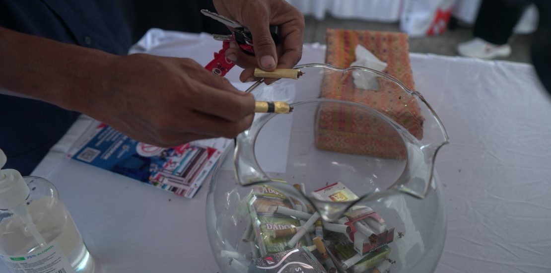 Petugas melakukan kampanye tentang bahaya merokok dan mengimbau mereka menukar rokok yang telah dipatahkan dengan snack sehat tanpa gula, sekaligus memfasilitasi konsultasi dengan dokter serta psikolog untuk berhenti merokok.